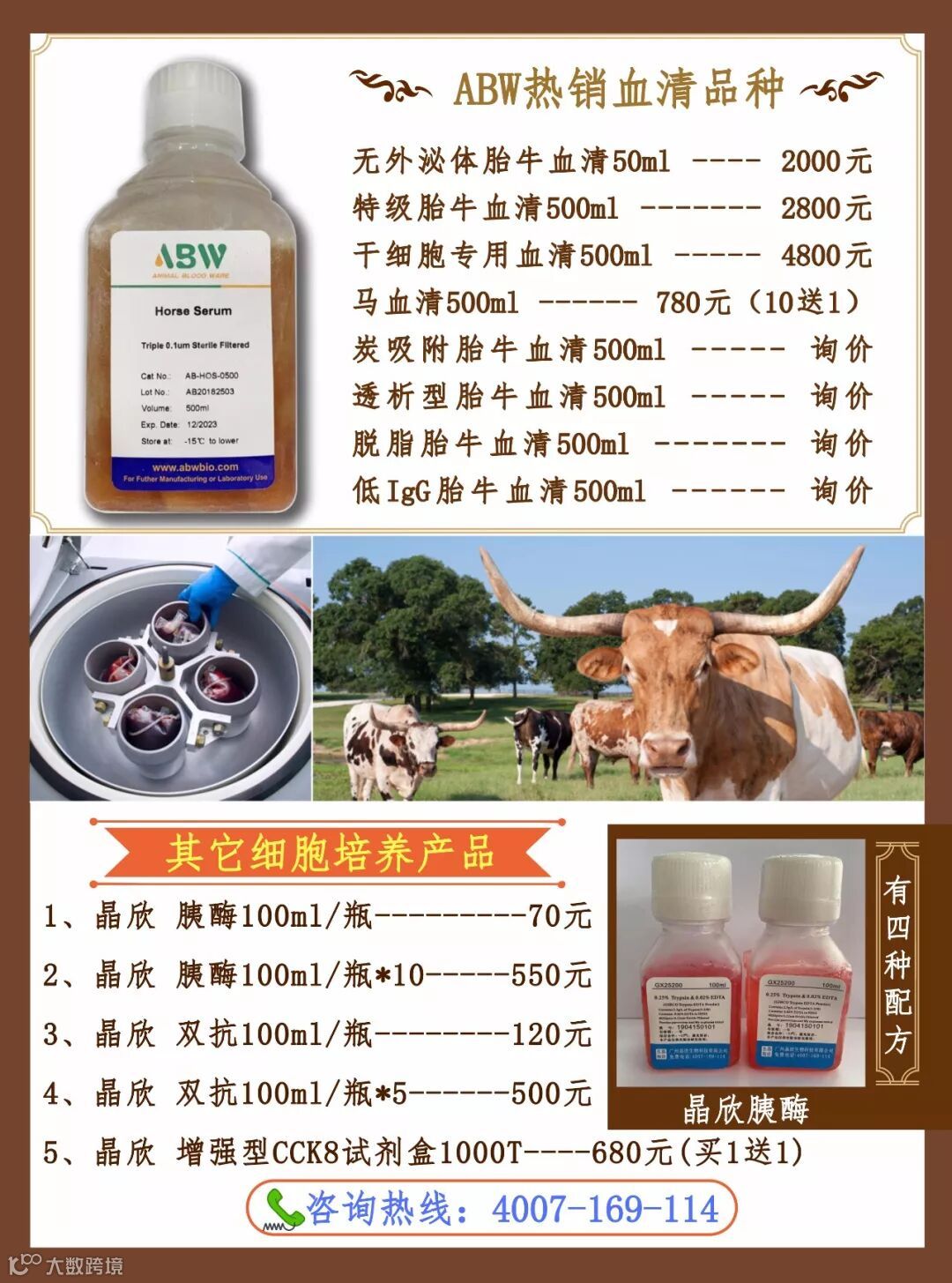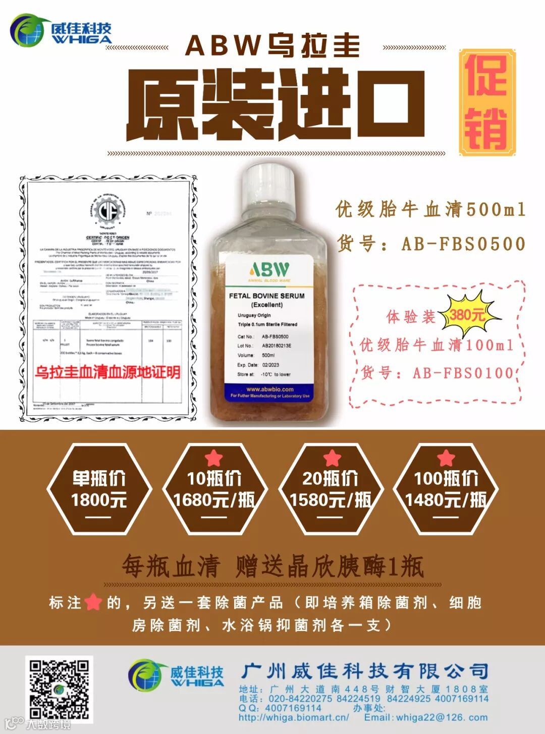 导读:每瓶血清,赠送100ml的胰酶。买满10瓶,赠送除菌产品一套。