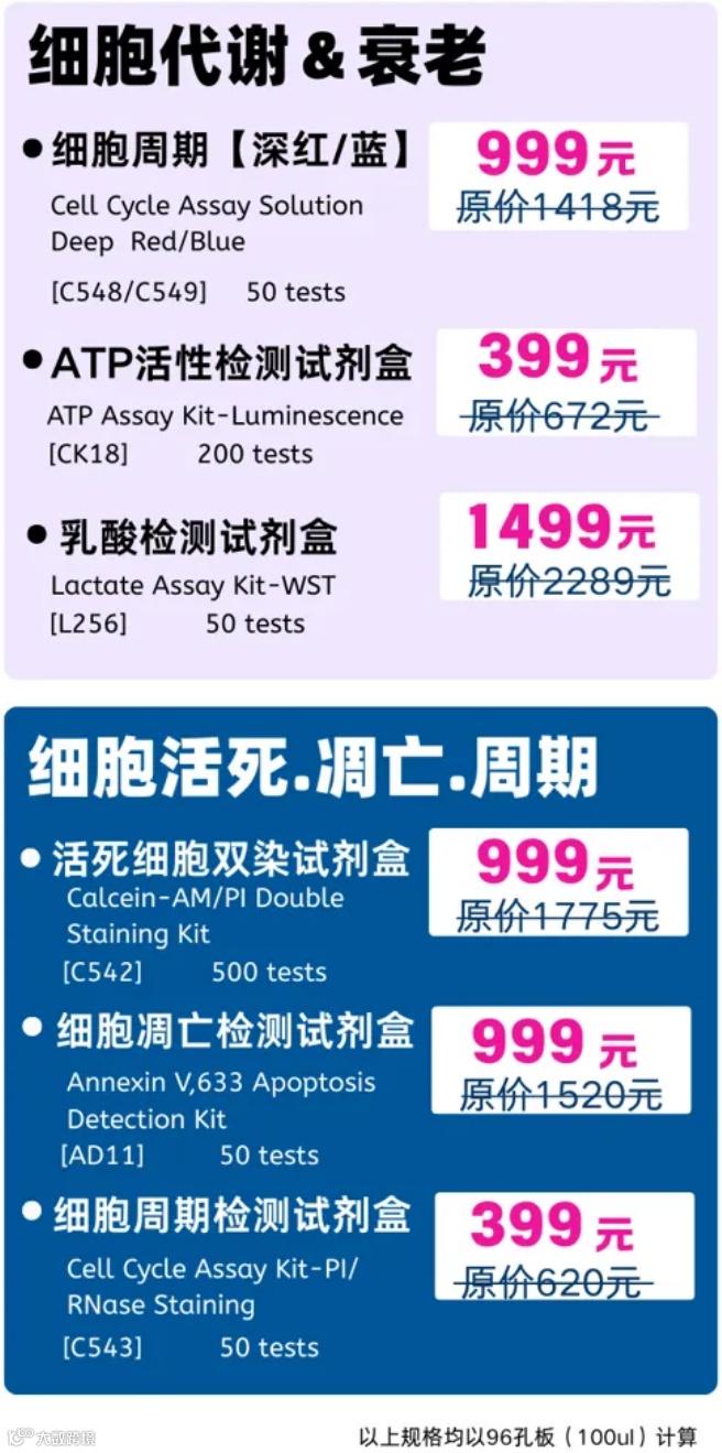活动期间,购买任意规格细胞代谢检测试剂盒,享买三免一!【注:除BCA蛋白浓度测定试剂盒(货号:E-BC-K318-M)外,全线可参与;免价格最低款】