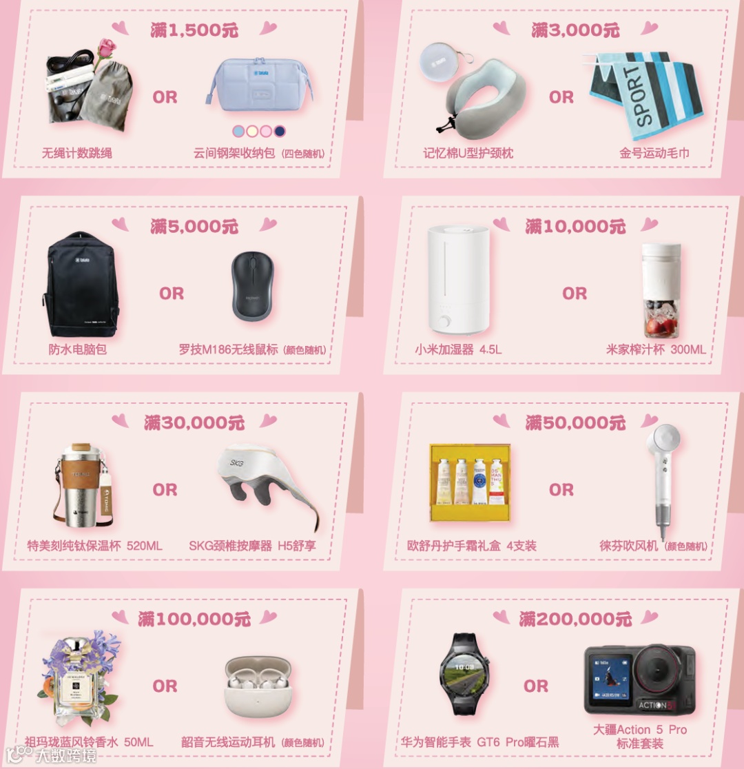 活动期间,促销产品限时特价,累计满指定金额,再送以下礼品: