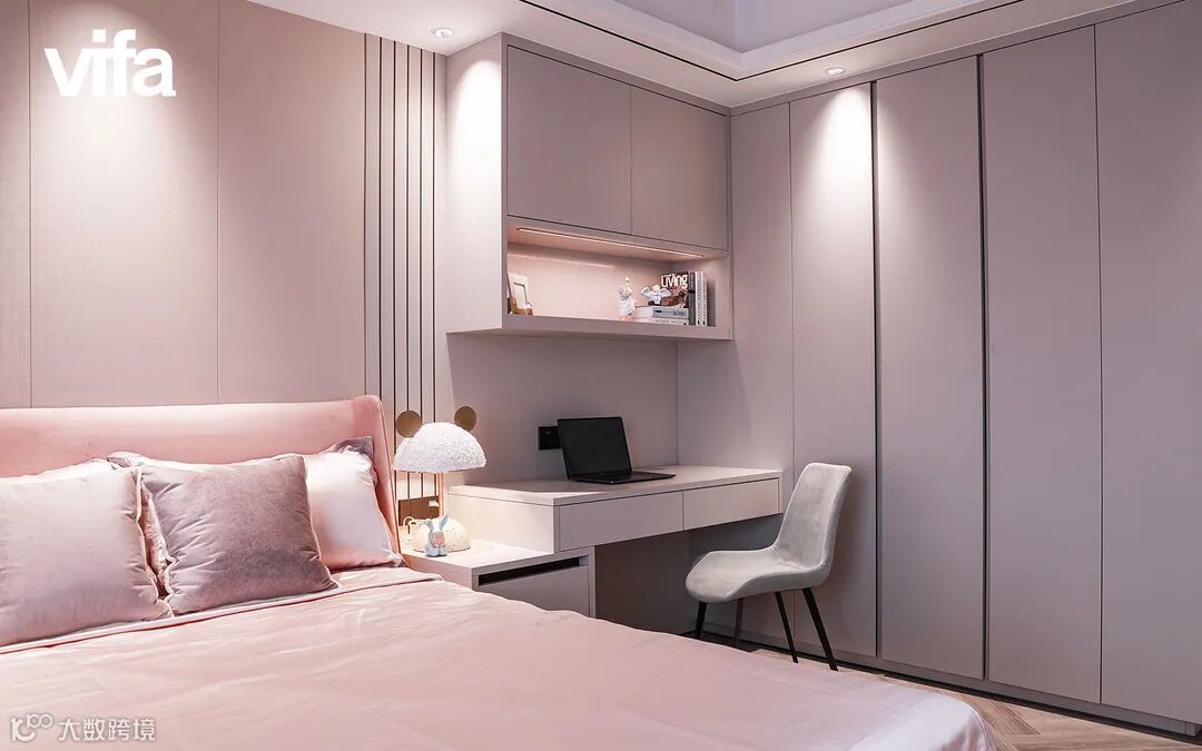 绒面杏衣柜与墙面融为一体,