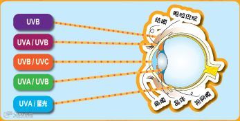 专家们认为最佳的保护措施就是佩戴能有效阻隔紫外线的太阳镜;光谱中紫外线:290nm-315nm为UVB,315nm-380nm为UVA,眼角膜会吸250nm-300nm的光波,长期户外运动暴露于UVB环境下会引起角膜炎;而眼睛晶体会吸收320nm-400nm的光波。
