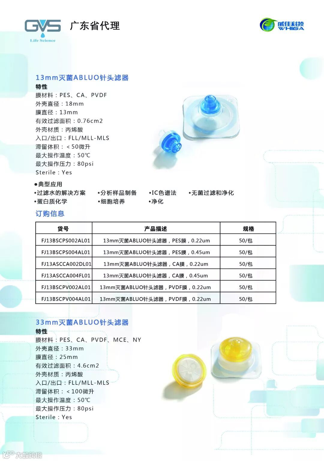 GVS-来自奢侈品王国的意大利,精湛的膜工艺技术让gvs膜透着与众不同的独特性,是世界上过滤膜最全的膜工厂。产品是由 GVS 2012年收购的whatman的膜工厂生产。为制药、医疗设备、诊断、餐饮和环境监测市场等重要应用领域提供最新的材料解决方案和全套产品。包括注射器过滤器、胶囊过滤器、液体样品微生物产品、微孔滤膜、蛋白质转移膜、核酸结合膜、蛋白质微阵列等一系列产品。