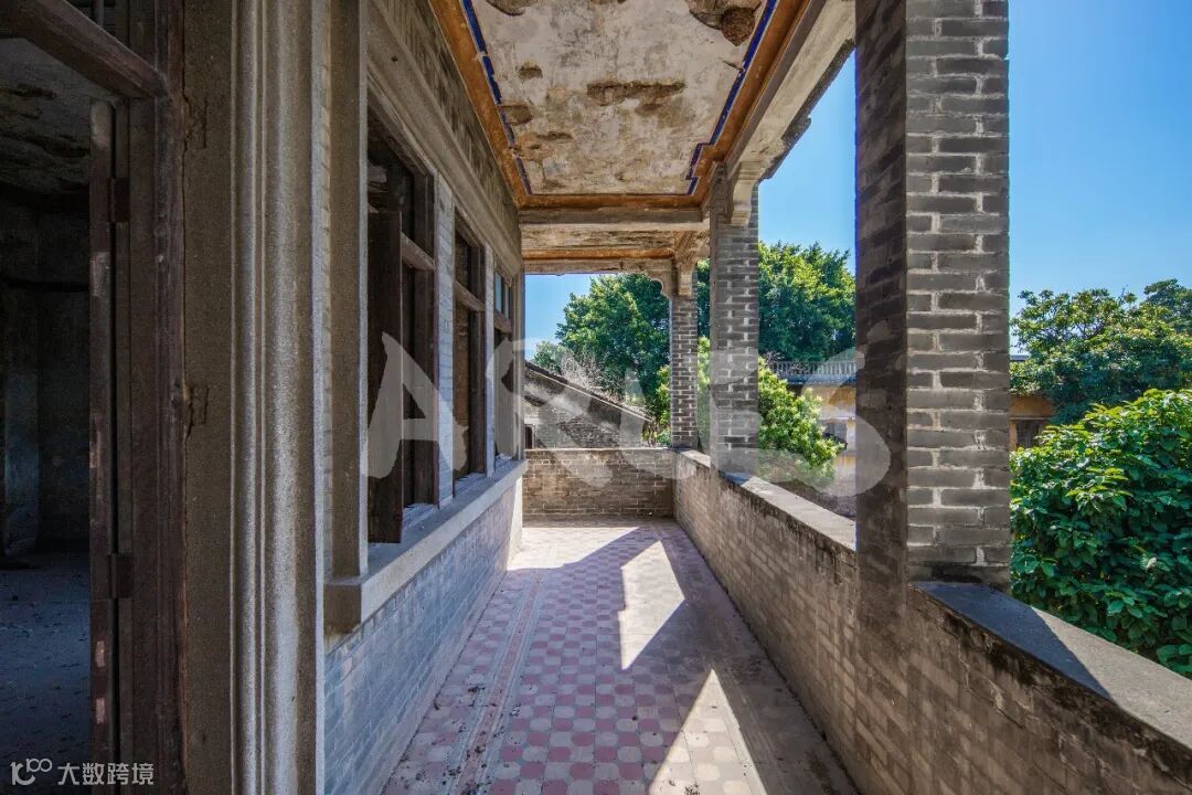 如今的荣院,早已人去楼空,成为一座空置的老建筑。推开趟栊门,二楼的花阶砖依旧完好,螺旋楼梯间的光影依旧流转,六角亭的琉璃瓦在阳光下泛着微光,只是墙面斑驳、门窗老旧,庭院里杂草丛生,曾经的繁华与烟火,都沉淀在岁月里。
