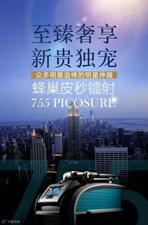 皮秒激光就是以一个这样快速和强大的能量直接震碎黑色素,黑色素再通过皮肤淋巴以排出体外的原理,从而达到改善色素性肌肤。除了可以更有效地击碎色素颗粒(色斑、痘痘痕迹、纹身等),还可以祛皱,同时刺激深层的胶原再生达到祛除色素、美白嫩肤、改善细纹、细腻肤质的四重特效组合,整个过程完全无创,速度更快,更舒适。
