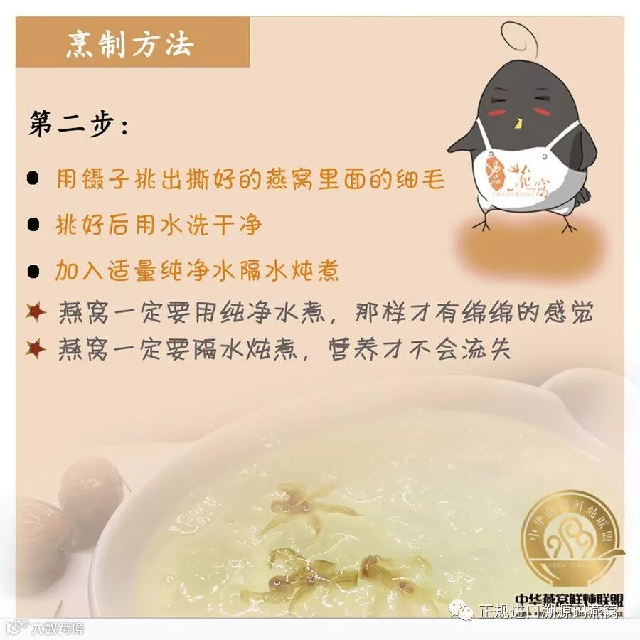 注意控制燕窝隔水炖煮的时间,避免化水