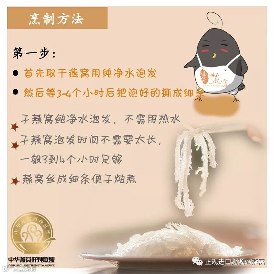 燕窝泡发、清洗、炖煮全程选用纯净水,如此才不会影响燕窝口感