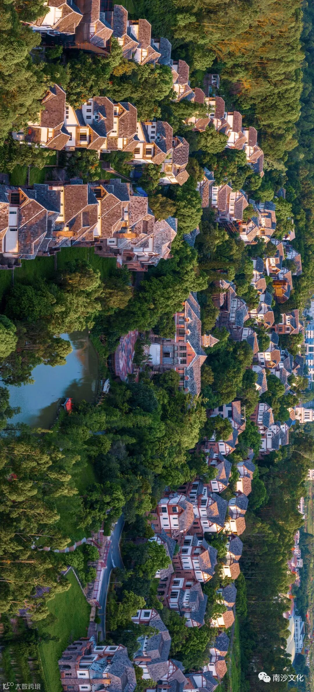 刷到这张航拍图时,我愣是没认出来——这绿树绕着尖顶屋、高低错落的样子,明明像北欧乡村,定位却在南沙。