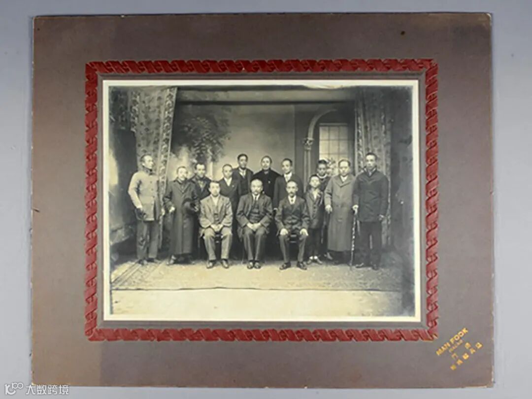 大哥孙眉晚年和友人合影于澳门温万福照相馆。前排中为孙眉。