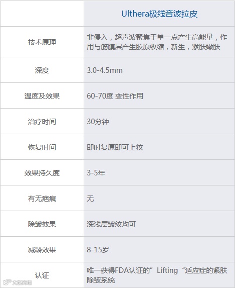 超声刀即Ulthera极限音波拉皮,利用聚焦超音波(HIFU-Knife)高强度超声波治疗装备,无创恢复肌肤弹力及改善皱纹的紧颜术。将超声波热能直接传导到皮下脂肪层下部(smas层),诱导筋膜收紧,激活深层胶原蛋白再生。