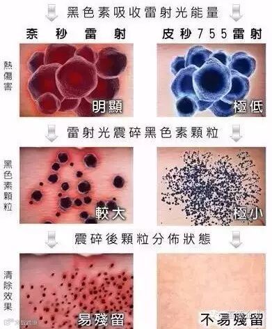 治疗时皮秒科技疾速时间比纳秒科技快,瞬间破坏黑色素力道更强,治疗肝斑、除斑效果更优越,对正常组织伤害极小,副作用越低,恢复快速。
