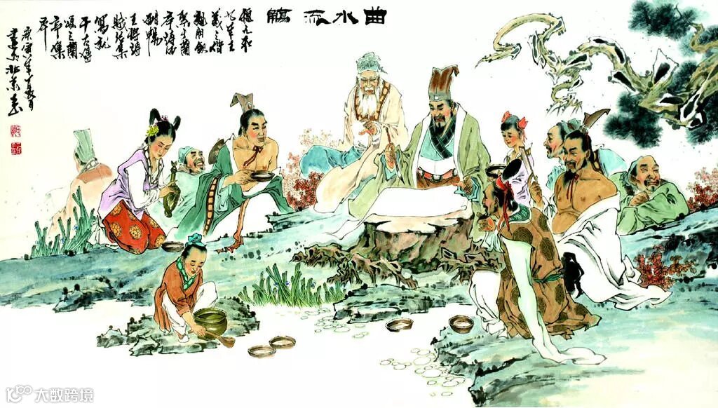 曲水流觞,是中国古代流传的一种游戏。夏历的三月人们举行祓禊仪式之后,大家坐在河渠两旁,在上游放置酒杯,酒杯顺流而下,停在谁的面前,谁就得即兴赋诗并取杯饮酒。曲水流觞这种游戏非常古老,有数千年的历史。晋代有名的大书法家王羲之所书的流传千古的书法作品“天下第一行书”《兰亭集序》,记录的就是在浙江绍兴兰亭一带进行曲水流觞游戏的过程。