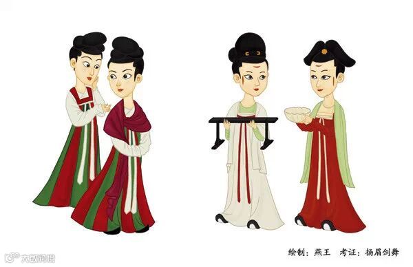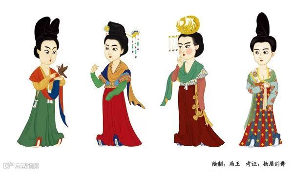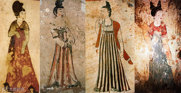 ▲贞观时女装风格接近北朝末、隋,崇尚纤细的身材,着装相对保守