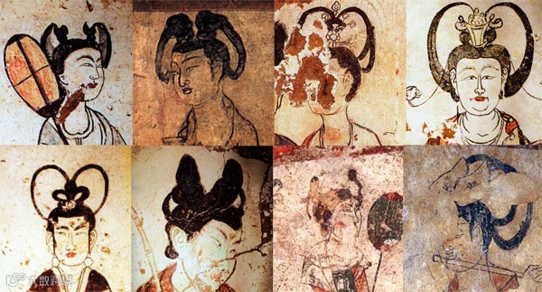 发髻的种类和形态变得更为丰富,主流发型按照束法有两大类,均包括单、双两式:除了发展得更加饱满高大的半翻髻外,各种各样的鬟髻也大为流行,小者如指,大者如拳,长者似角;还有的余发不回绕成环,随意垂下。宫廷贵妇还有更加夸张的鬟髻,环径加倍扩大,成为醒目的左右两大鬟,也是舞女的常用表演发型。