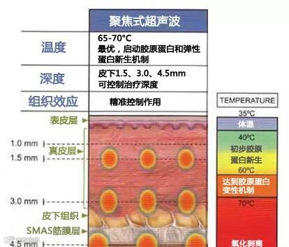 Ultherapy治疗深度为3.0mm~4.5mm