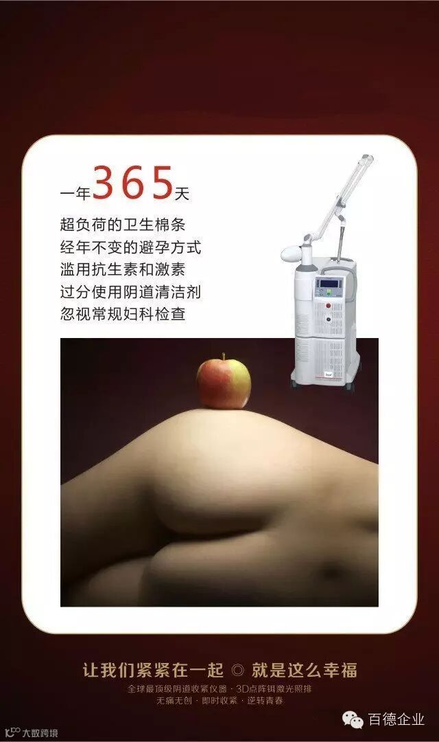 私蕾,怎样让私处紧致水润,让爱人更有体会? 1、缩阴,收紧阴道。快速恢复阴道紧致度,治疗不超过半个小时,让你体验“紧握”的快感。 2、洁阴,保养阴道。清洁阴道内部,滋润、防护阴道遭受细菌入侵,预防感染及其衍生的病变。 3、润阴,消除干涩。刺激阴道内部自我修复系统,改善干涩,使新嫩细胞再生,内分泌正常,提高性生活情趣。 4、美阴,漂红滋嫩。有效消除阴道内及阴唇外部色素沉着,淡化黑色素,瞬间变得娇嫩欲滴。