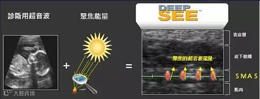 治疗深度为1.5mm~4.5 mm,超声波能量会产生数千个非常微細独立的热凝点,直达SMAS筋膜层,激发胶原蛋白持续新生,重新构筑弹韧有力支撑网。