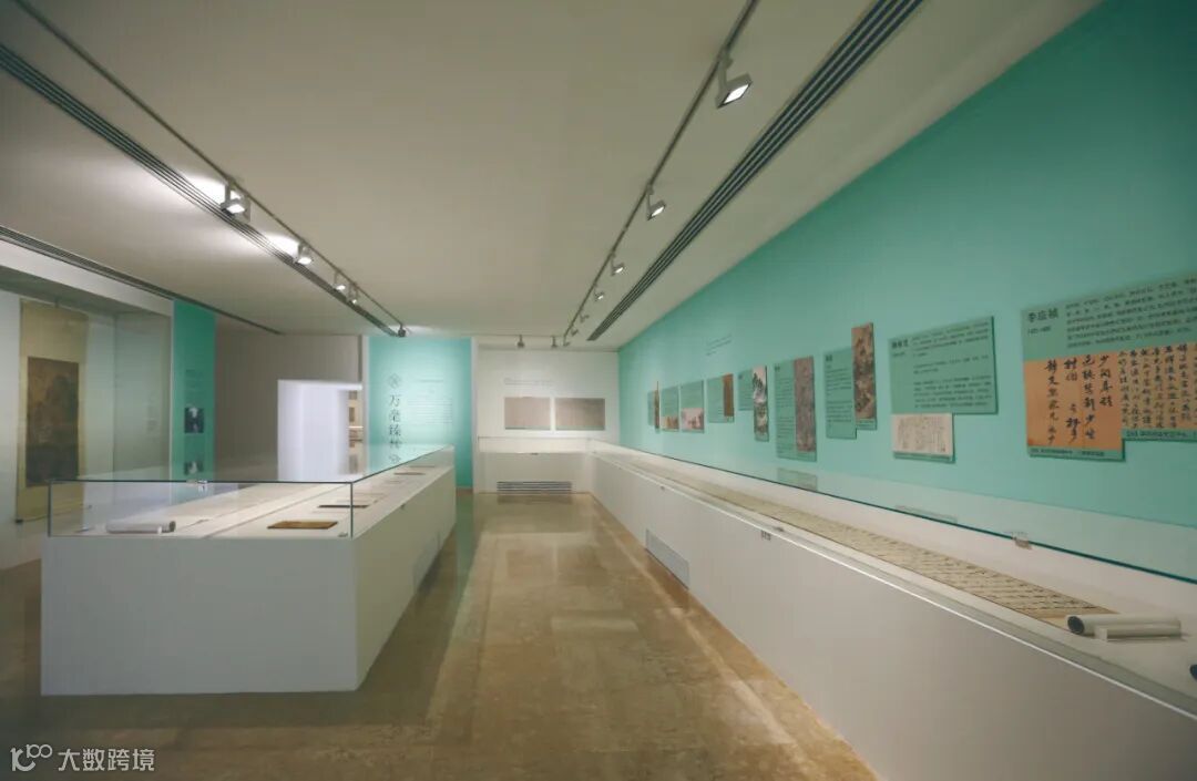 考虑到此次展出的书画多属文物级别,我们特别采用恒温恒湿展柜,并辅以墙面文献,营造专业而安全的观赏环境。