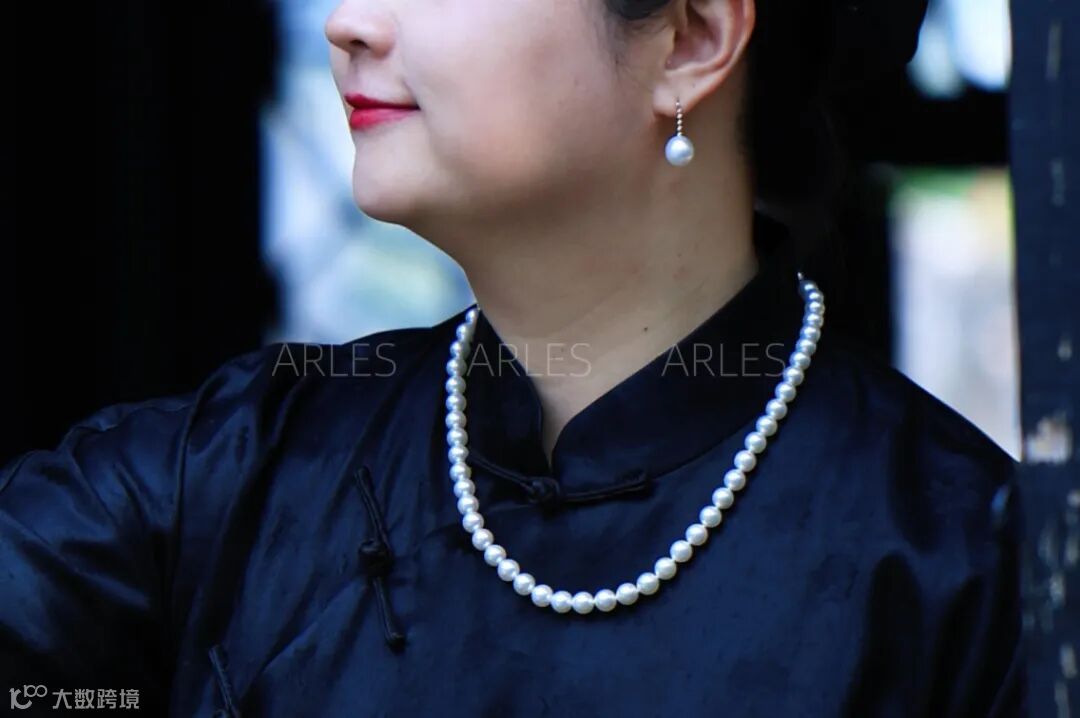 珍珠悬于颈间,如夜海升明月,辉光温润破深沉。