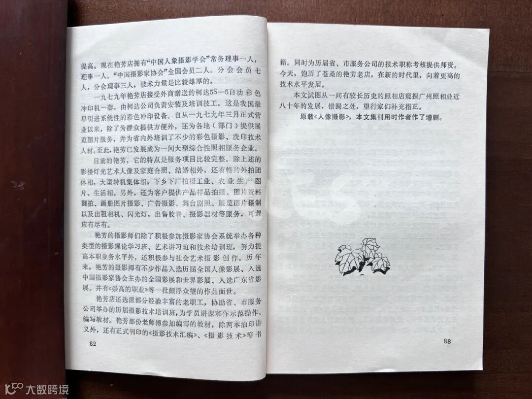 本文试图从一间有较长历史的照相店窥探广州照相业近八十年的发展,错漏之处,望行家们补充指正。原载《人像摄影》,本文集刊用时作者作了增删。