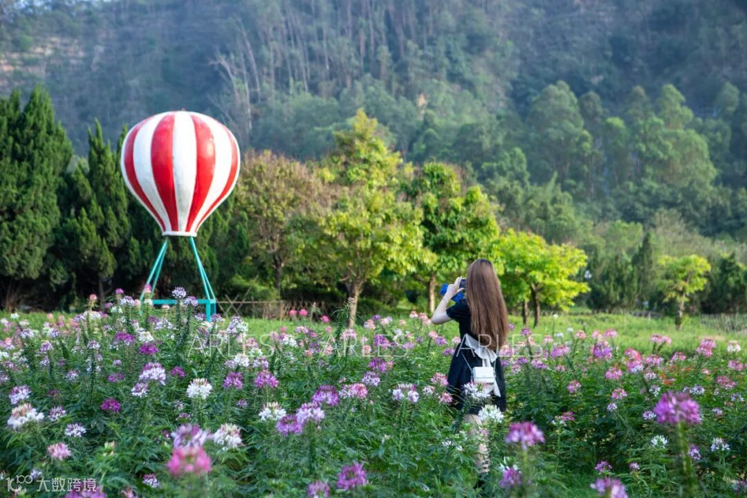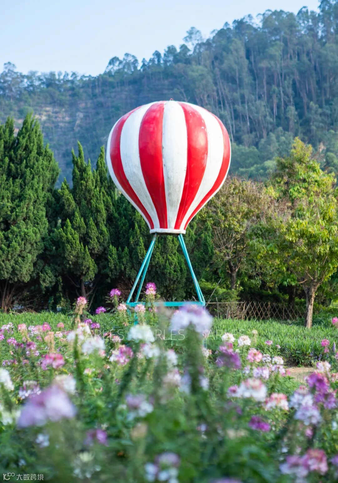 大风车和热气球被各色花卉拥簇着,是园区最明亮的点缀,也是小姐姐们必收集的拍照打卡点。