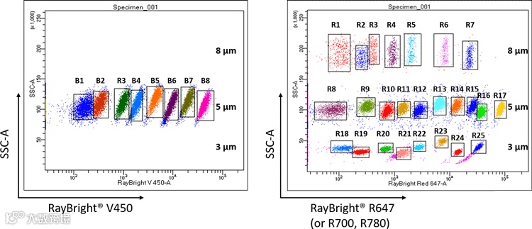 RayPlex™ 利用双抗夹心免疫分析原理,通过使用微珠大小和荧光团的不同组合,可以同时分析多个目标蛋白,拥有APC及PE通道的标准流式细胞仪即可使用!
