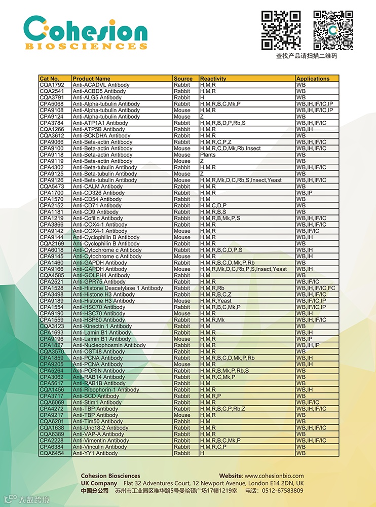 导读:康何欣cohesion 内参抗体 买1送2,联系电话:4006-169-114