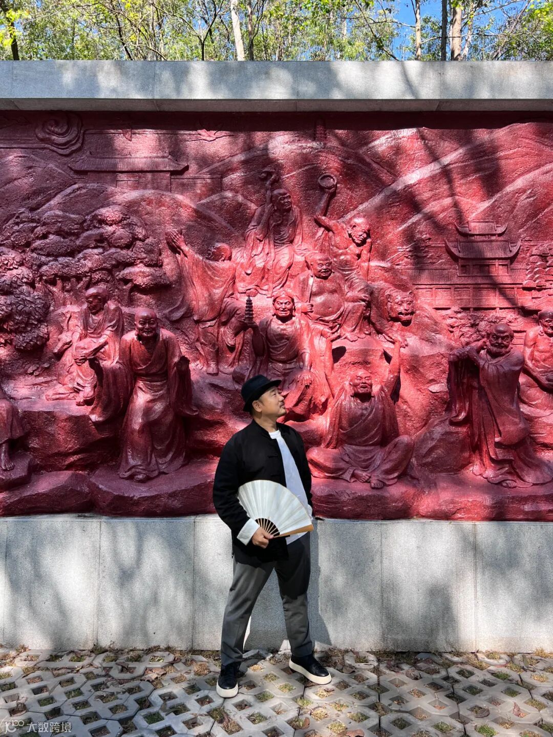 当你来到十八罗汉山,首先映入眼帘的是“镜心水月”石牌坊和巨幅雕塑“十八罗汉”。红色的罗汉雕塑栩栩如生,阳光和树影来回推搡,终于把他们的“皮肤”晒成了红棕色。