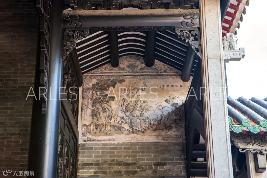 黄阁将军麦公祠位于黄阁东里村内,历经多次重修,曾在二十世纪用作供销社,部分结构遭到改建或拆除。幸运的是,主体建筑得以保存,并于2016年被列为南沙区文物保护单位,2019年依清代形制完成修缮。如今所见祠堂为典型的岭南清代风格,坐北朝南,三间两进,建筑占地约280平方米。祠内保留有精美木雕、砖雕、石雕及两幅寓意“诗礼传家、科举功名”的壁画——《五桂联芳》和《诗酒琴棋》。