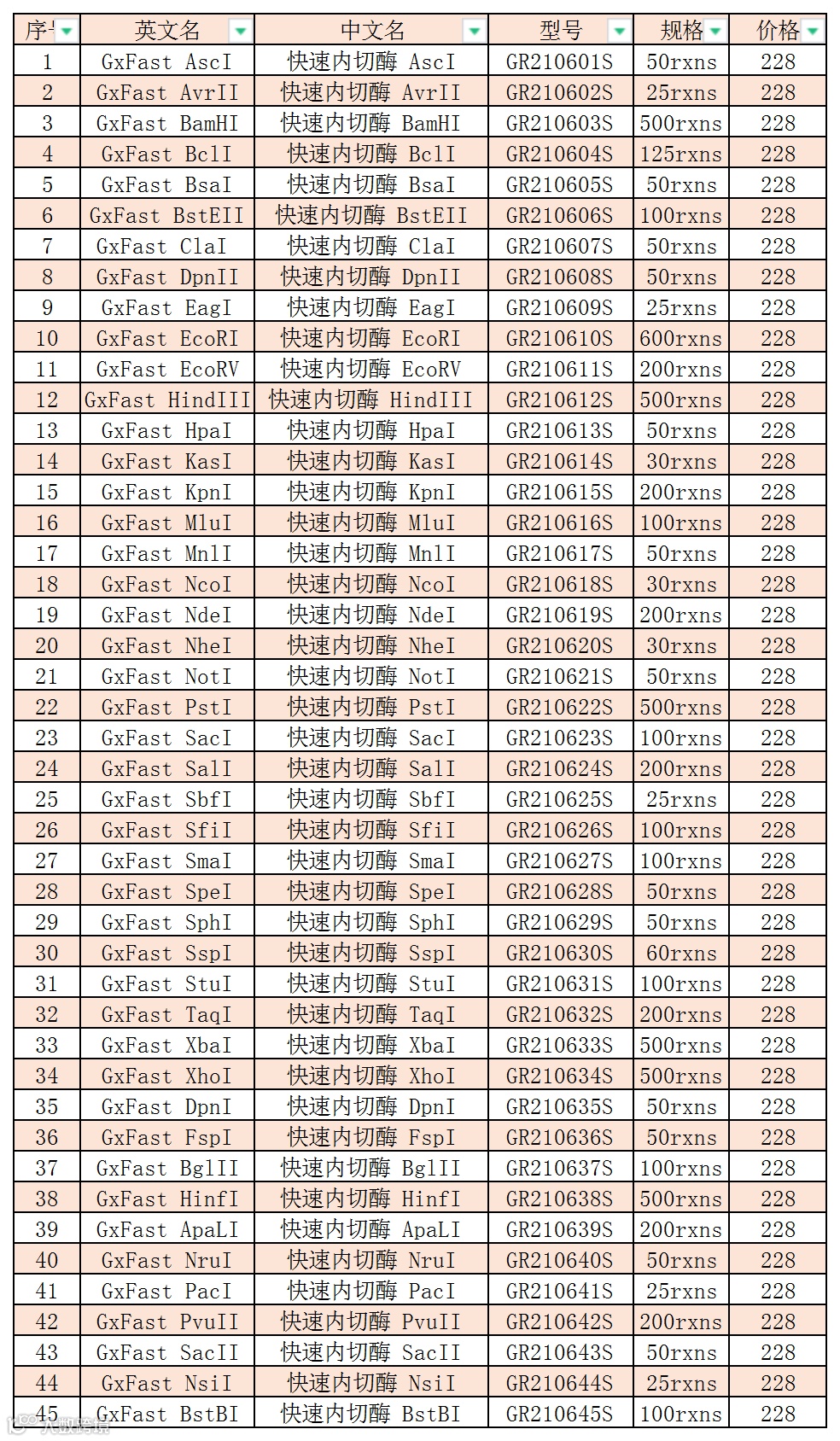 晶欣2021年限制性内切酶(快速)