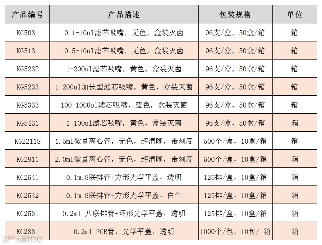 二:科进滤芯盒装吸头和PCR耗材(列产品)