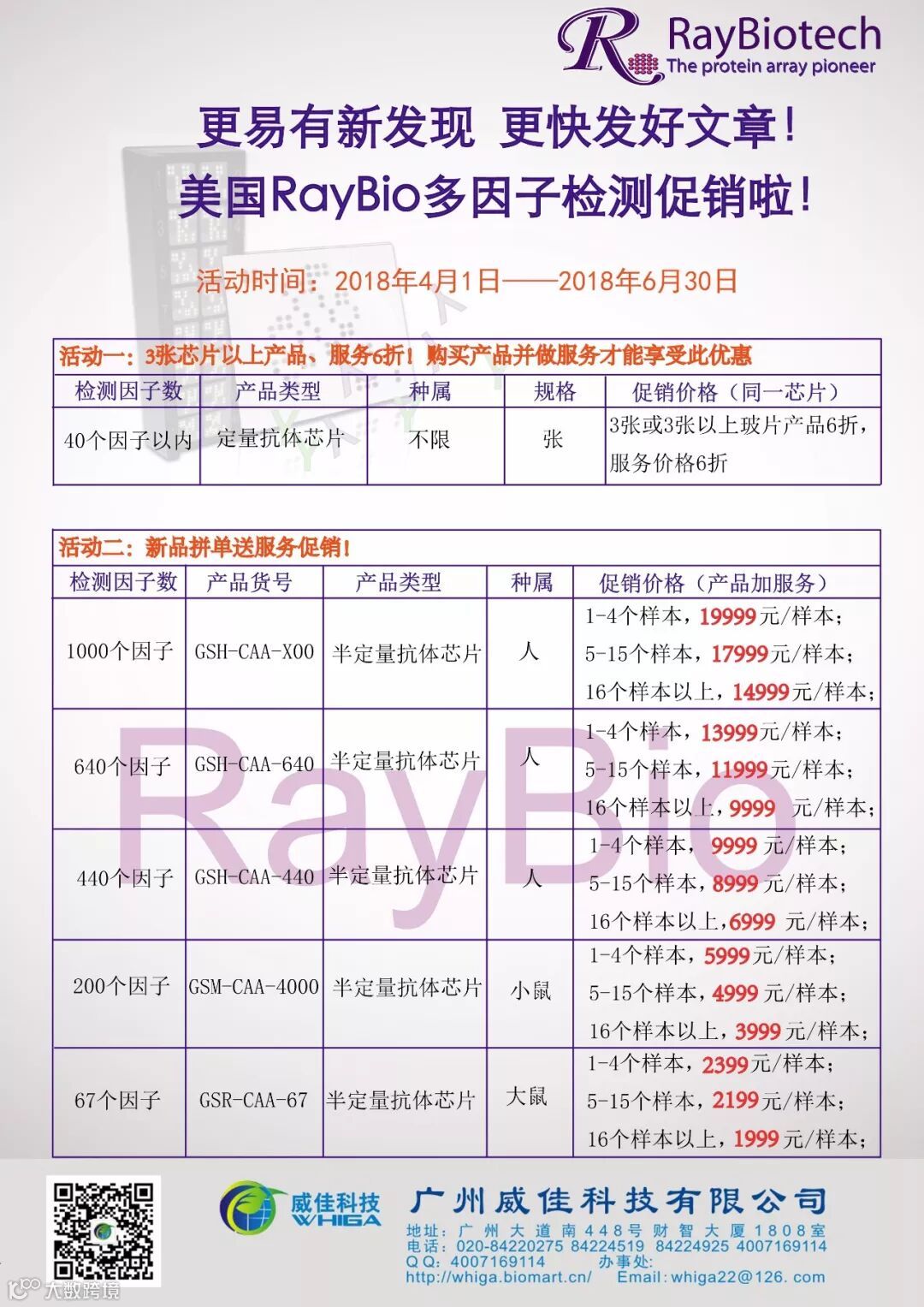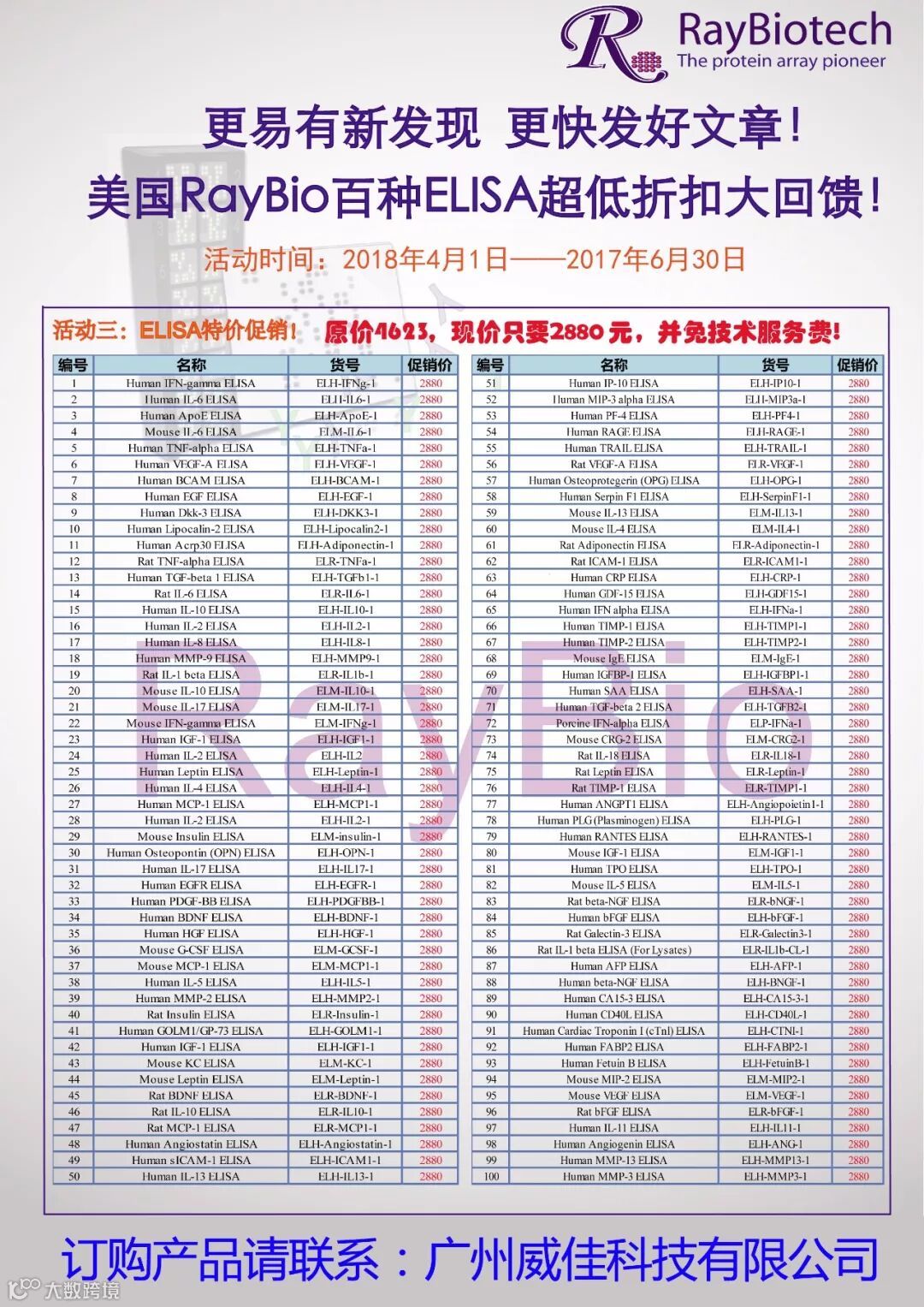 导读:美国RayBio多因子检测促销,百种ELISA超低折扣大回馈!