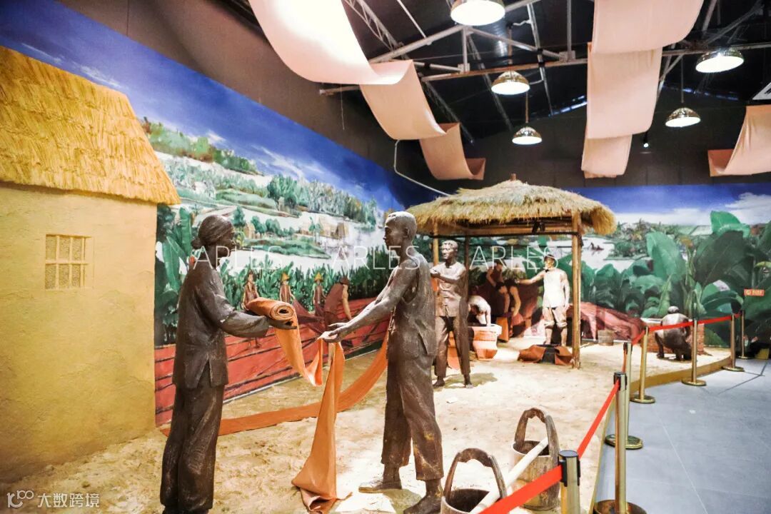 香云纱的起源与珠江疍家人息息相关——为加固渔网,他们以薯莨浸染,逐步演化出染衣技艺。文化馆内四大展厅深度剖析这一脉络: