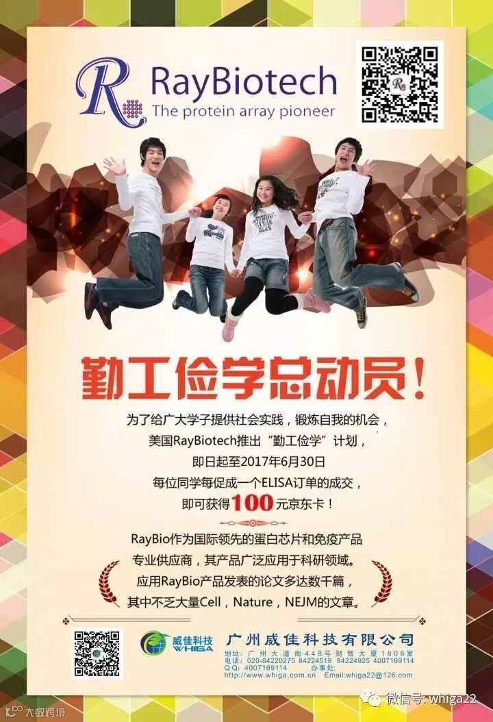 导读:美国RayBiotech勤工俭学总动员,活动时间:即日起至2017年6月30日