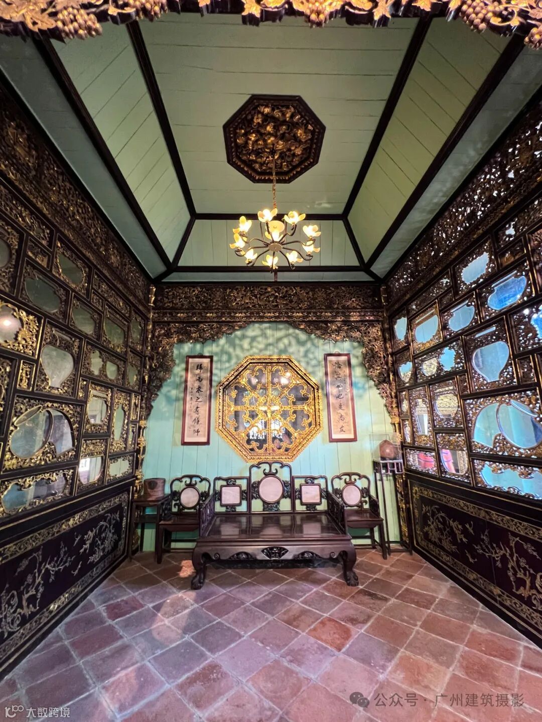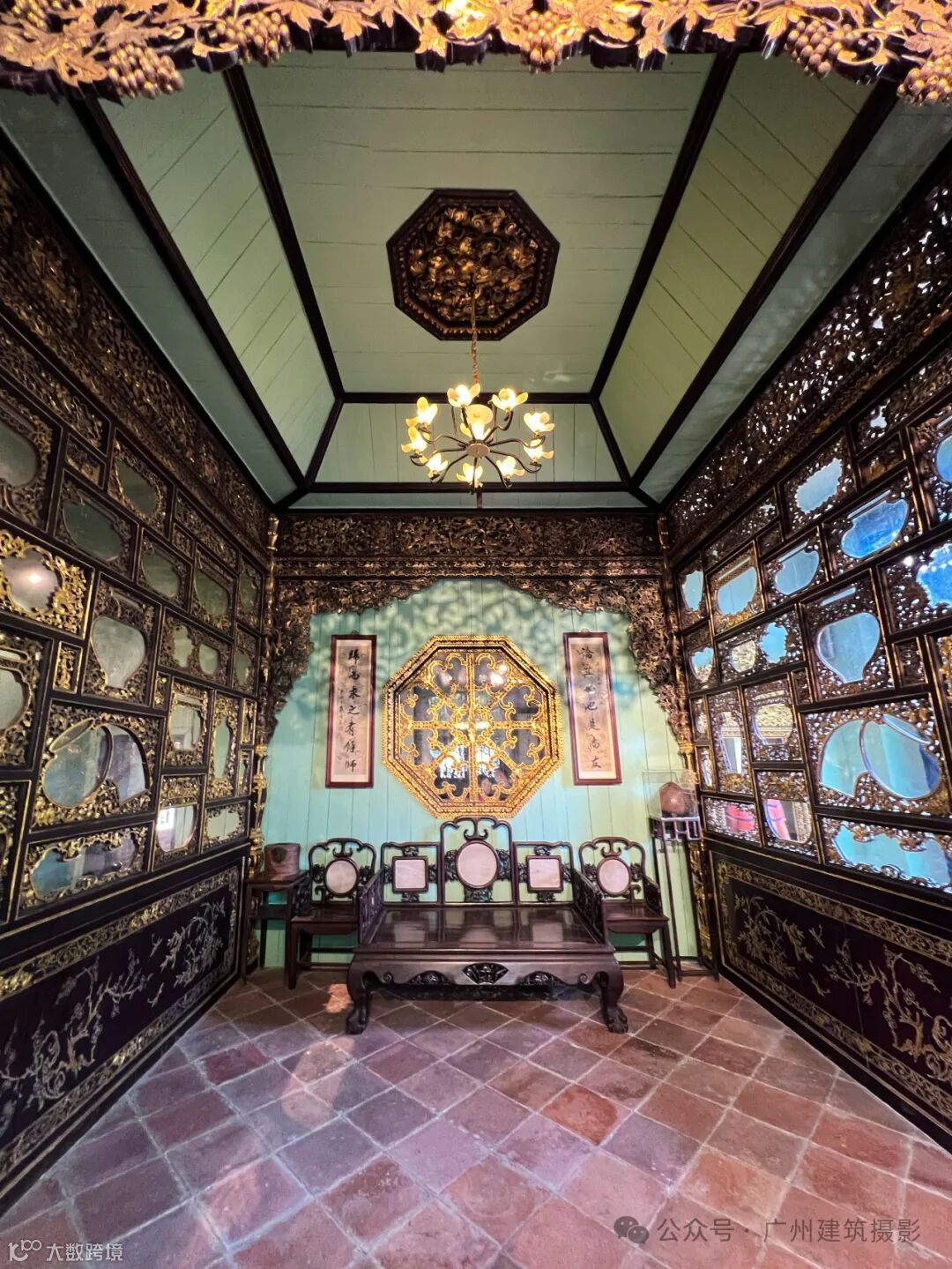 金楼建筑群最负盛名的当属其木雕贴金工艺,整座建筑从梁架到门窗,无不精雕细琢而后饰以金箔。主厅的"百寿图"木雕,以百个不同字体的"寿"字构成;"渔樵耕读"主题雕刻则生动展现了传统农耕社会的理想生活。建筑布局遵循岭南传统"三间两廊"的格局,但装饰上融合了苏式木雕的细腻与广作工艺的繁复。特别值得一提的是,金楼虽以"金"为名,却并非一味追求奢华,其装饰图案多取吉祥寓意,体现了传统文人"藏富不露"的审美趣味。这种内敛的奢华,正是岭南建筑艺术的精髓所在。