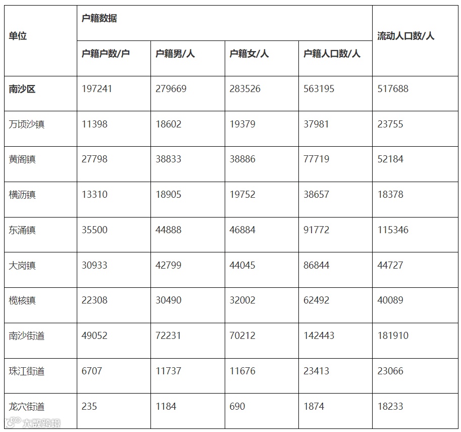 注:港湾街道于2023年12月28日成立,2023年港湾街道人口数据包含在南沙街道中。