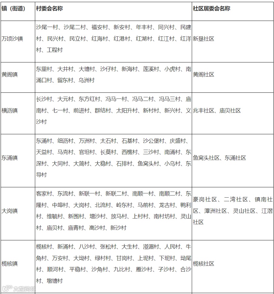 2012年9月6日,国务院正式批复《广州南沙新区发展规划》,南沙新区被设立为国家级新区。2012年12月1日起,番禺区东涌镇、大岗镇、榄核镇划归南沙区管理,南沙区下辖万顷沙镇、黄阁镇、横沥镇、东涌镇、大岗镇、榄核镇、南沙街道、珠江街道、龙穴街道。