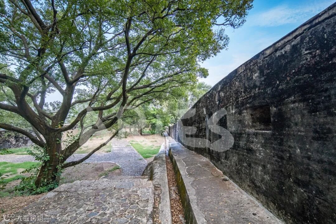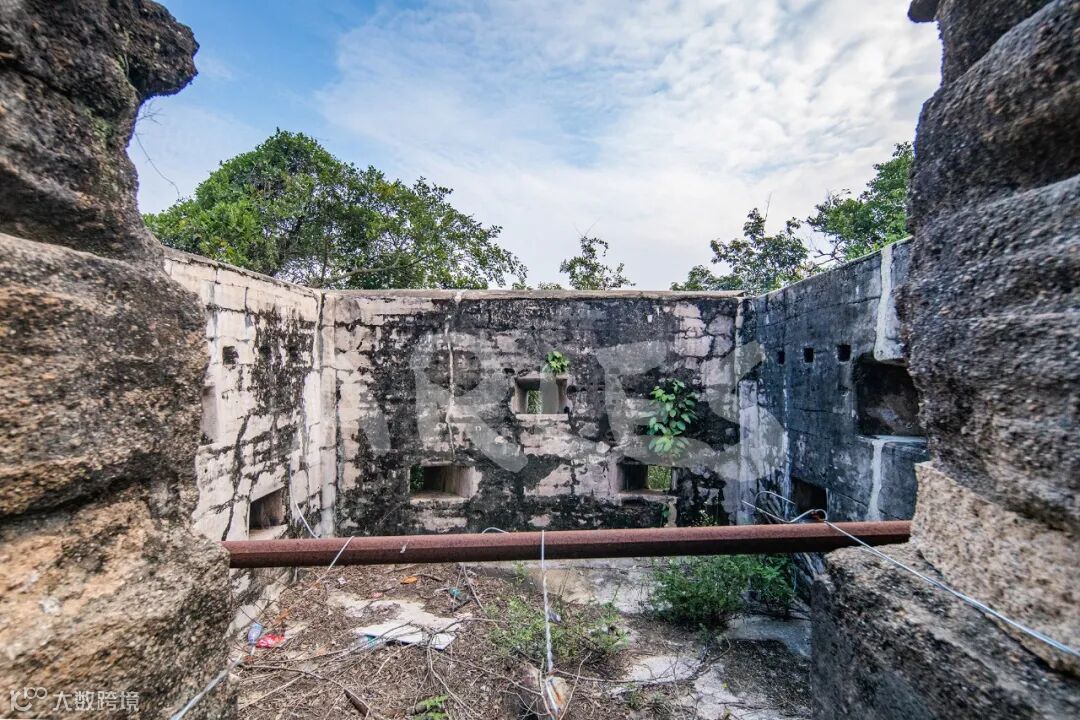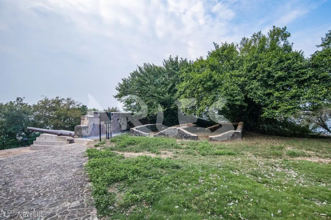 山顶营旧址,位于珠江口东岸威远岛南山山顶。始建于清道光二十三年(1843),清光绪九年(1883)虎门炮台大修时重建。清光绪年间建造,由围墙、炮台及兵营组成。山顶营旧址呈方形,全长123米,中宽30米,四周建有三合土围墙,围墙上布满枪眼,围成一个炮城的形制,中设兵房和练兵场,占地面积约5490平方米。围墙西南面开口处有德国产克虏伯大炮一门及炮座一个,炮身通长845厘米,膛径24厘米,重21吨,射程10公里.
