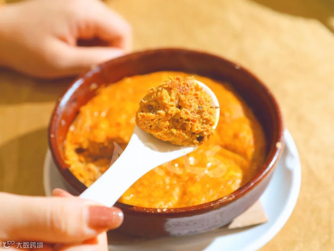 虾喇膏: 濒临失传的岭南奇鲜。瓦钵慢焗是其灵魂。蛋液包裹着橙红膏粒,细火催出焦香,入口沙沙融化,咸鲜甘糯层层绽放,鲜味如潮汹涌,余韵悠长不绝,堪称舌尖上的“水中黄金”。