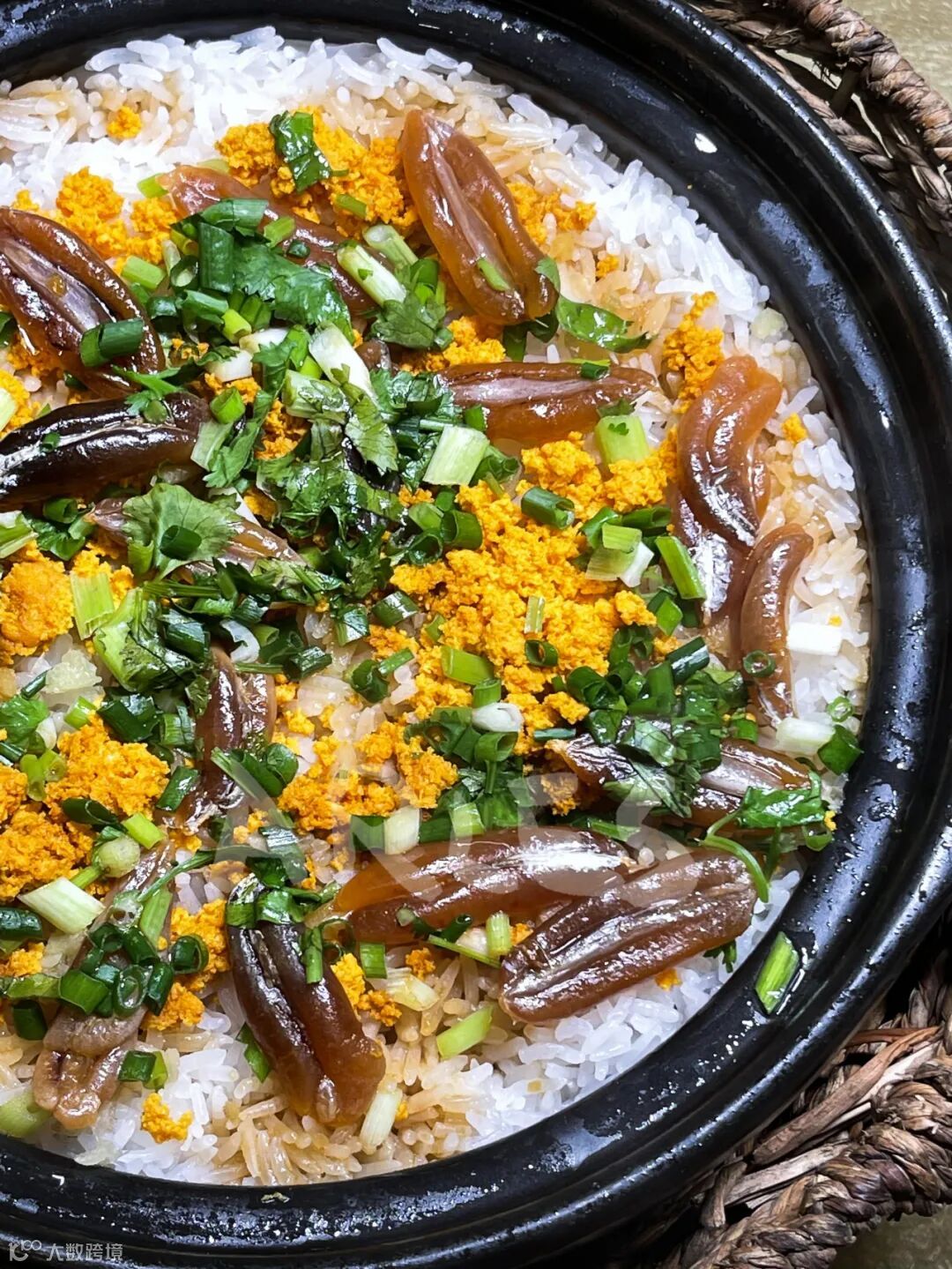 凤尾鱼籽海胆煲仔饭则是咸鲜与海味的华丽交响。遵循“不时不食”,疍家妹的煲仔饭不拘一格,依四时渔获随机组合,将“不时不食”化为舌尖的惊喜奇遇。每一煲都是山海馈赠的惊喜盲盒。