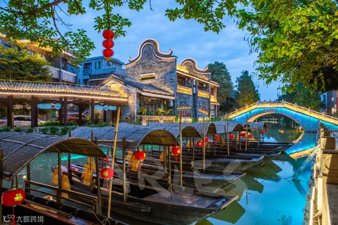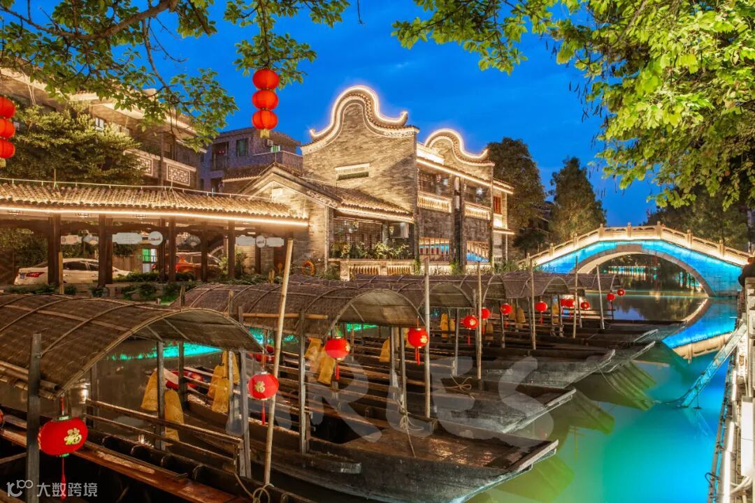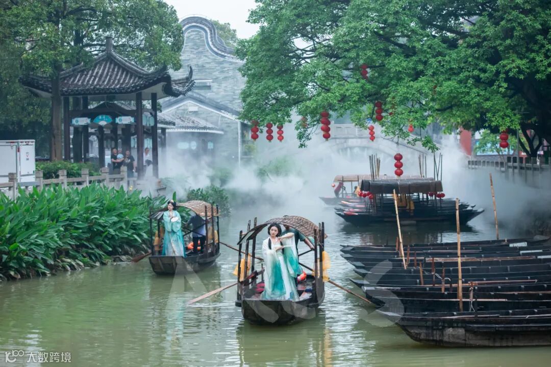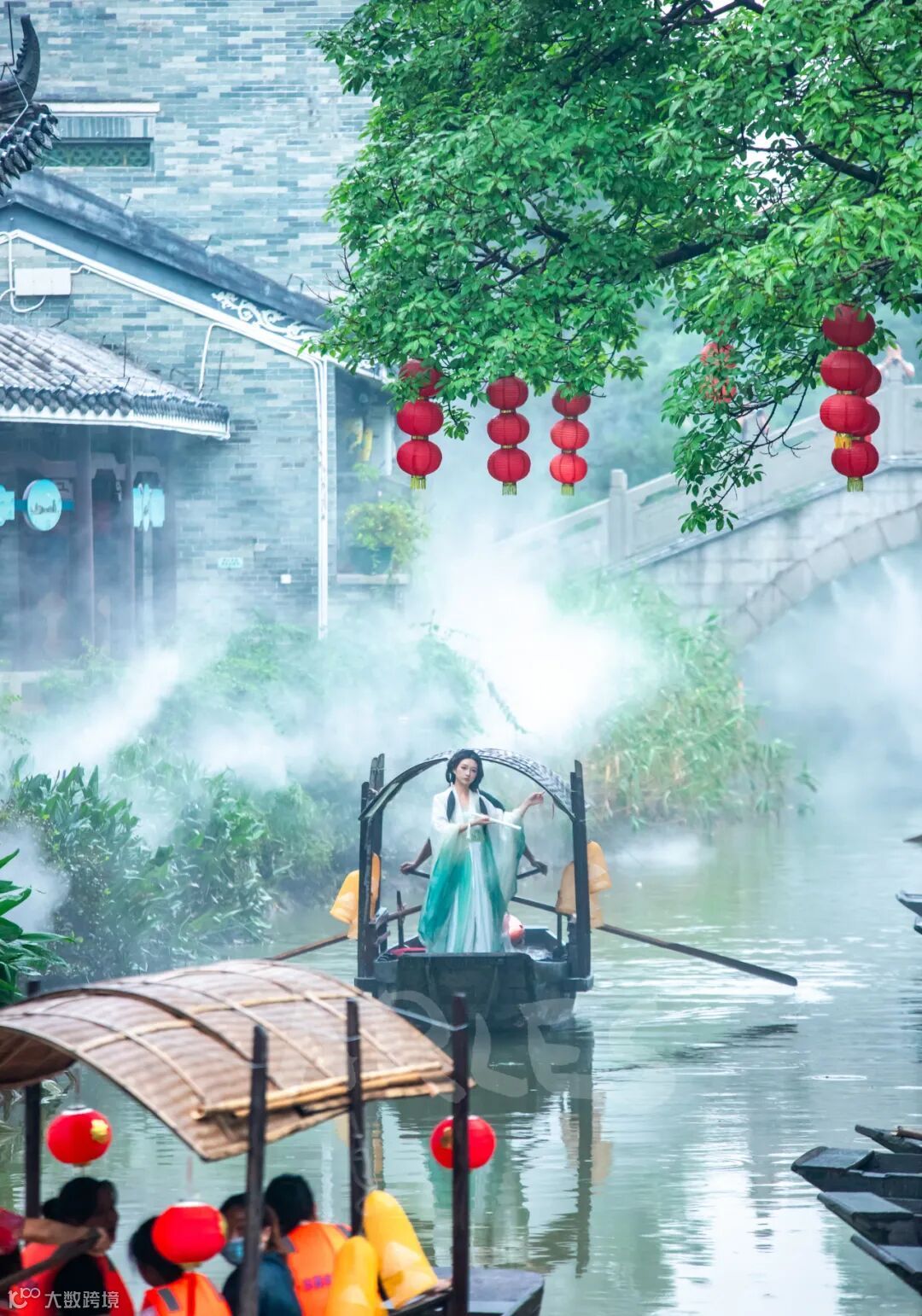 水雾仙境: 水乡喷雾系统适时开启,薄雾轻笼河面与屋舍,仙气弥漫。此时伫立水畔,便是画中人。