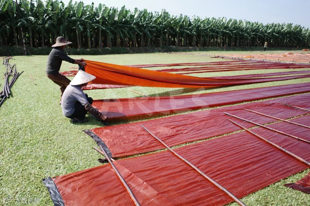 关键浓度: “四过水”(渣水) 是所有等级中浓度最高的薯莨液。典型用途: 浓度最高的“四过水”通常用于坯绸的第一次染色工序。