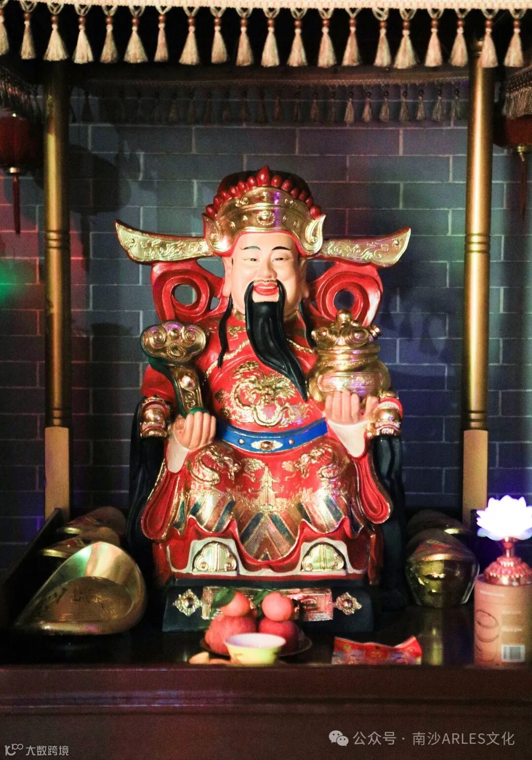 正月初五迎财神,是中国民间古老的传统习俗。相传年初五是财神的生日,而这一天也是广州人所说的“财神诞”。当年,该庙是广州乃至番中顺,不可多得的神庙,颇有名气。据常年打理该庙的婆婆说,每年初五迎财神,信众们会带上各色果品糕点,早早就从各地赶来财神庙上香。祈求今年财运亨通,而南沙的信众则通常还会折上各种纸钱元宝用于供奉财神,每样纸钱元宝都有独特的寓意,如:象征一帆风顺、满载而归的纸船,代表旗开得胜的纸质符咒令旗,寓意路路通的金元宝和花开富贵的莲花座。