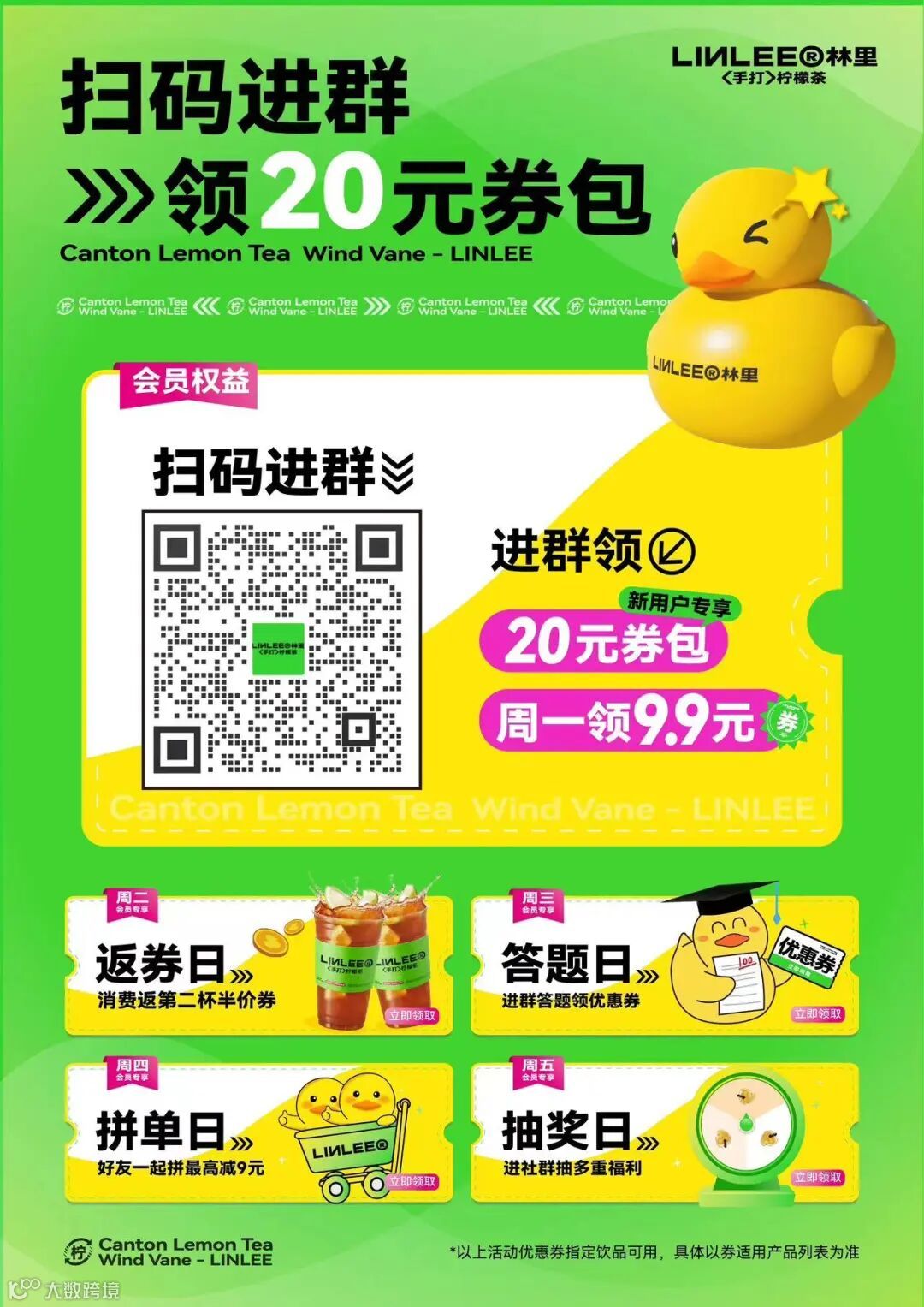 【新店试业】LINLEE林里柠檬茶全场7折!超萌小黄鸭等你来领~