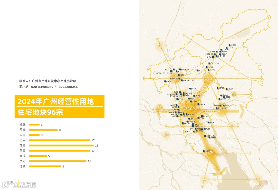 近日,广州市规划和自然资源局发布了《2024年广州经营性用地供地蓝皮书》。蓝皮书共收录258宗用地,包括涉住宅地块96宗、商服地块119宗、工业地块39宗、其他地块4宗。其中,涉增城区的有9宗住宅地块