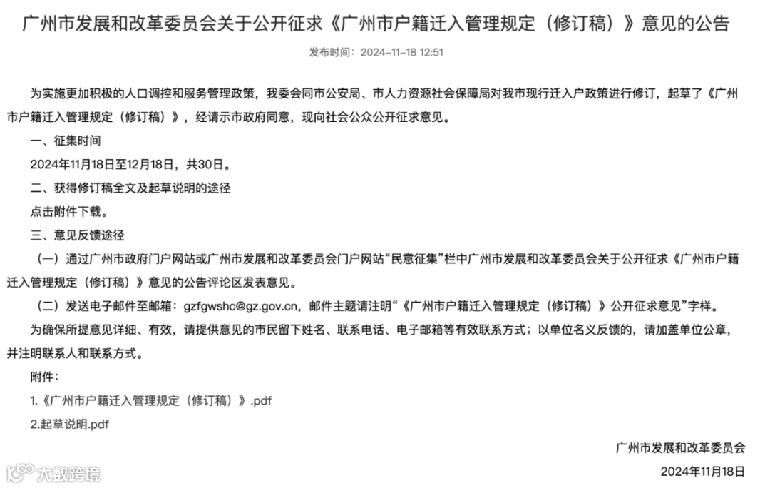 广州入户新政,门槛再降低!11月18日起,《广州市户籍迁入管理规定(修订稿)》正式公开征求意见。