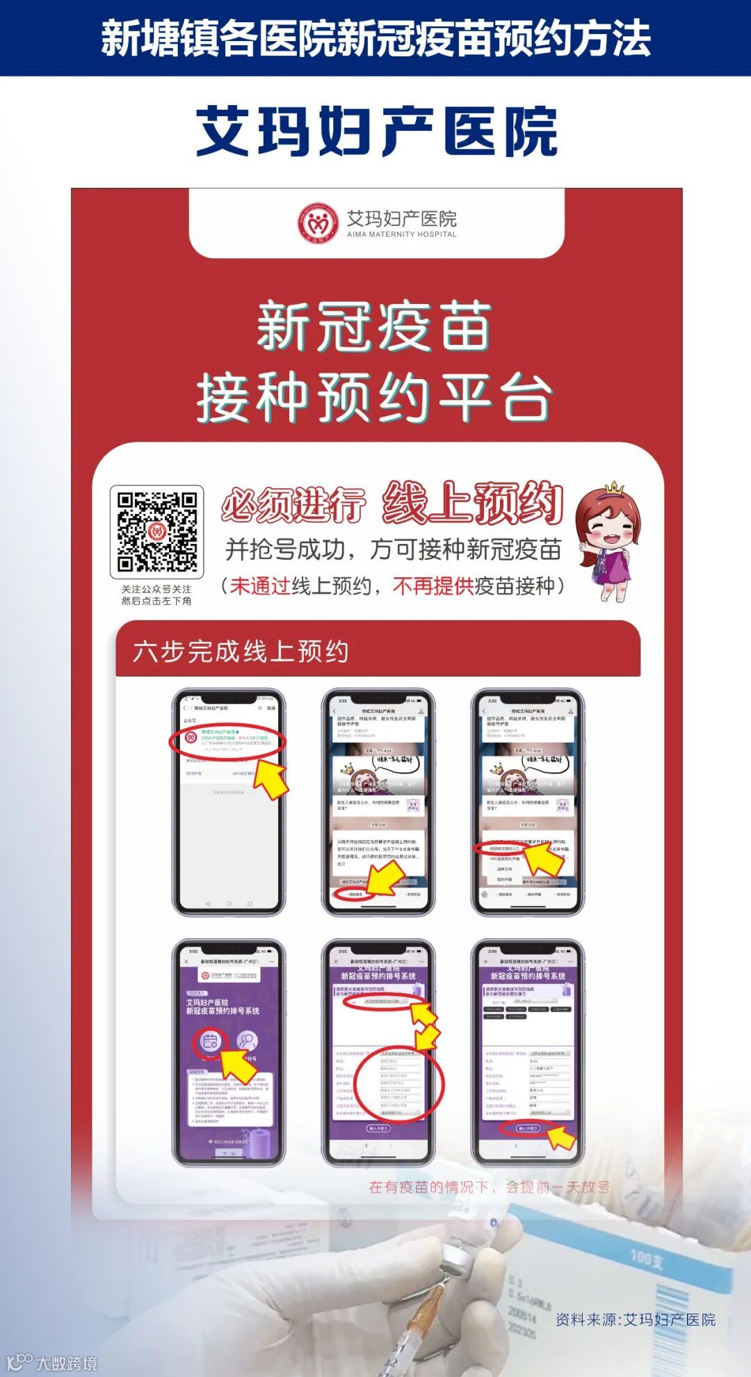 5.疫苗接种实行个人网上预约和线下现场派票(先到先得)两种方式,个人网上预约可到上述接种点医院微信公众号预约。