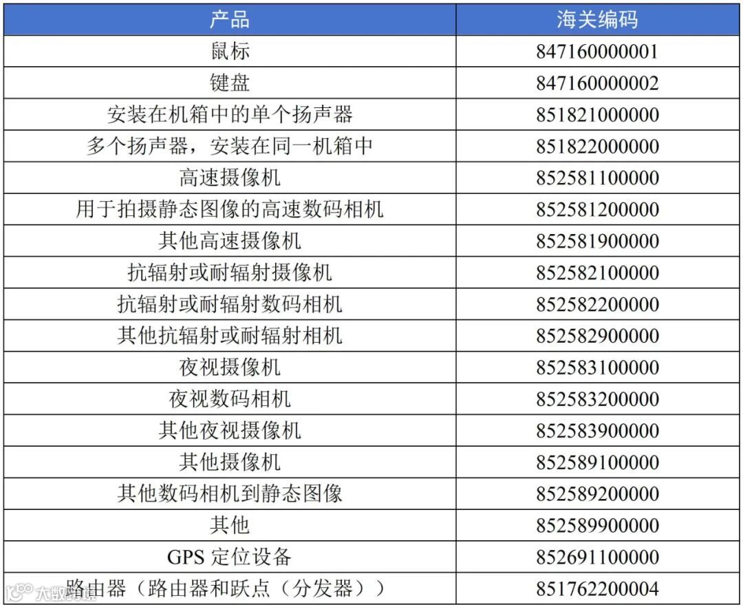 本决定中包含的产品和海关编码: