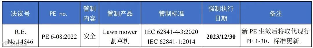3. 智利SEC发布涉及割草机的法规将强制执行