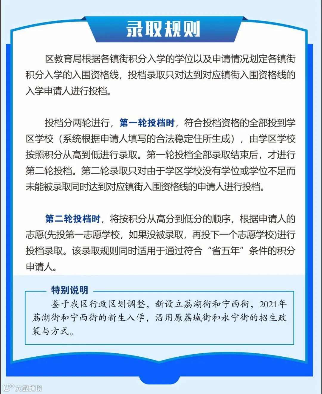 参加积分申请入学的申请人,可在积分申请时选择居住地所在镇(街)作为其子女申请入学镇(街)。我区设置学区学校和志愿学校,学区学校由合法稳定住所生成,不能选择和改变。志愿学校设置4个,不能跨镇街选择。我区“积分入学申请”工作在公示积分审核结果后,将公布全区公办学校用于当年积分制入学的招生计划,供申请人参考填报。