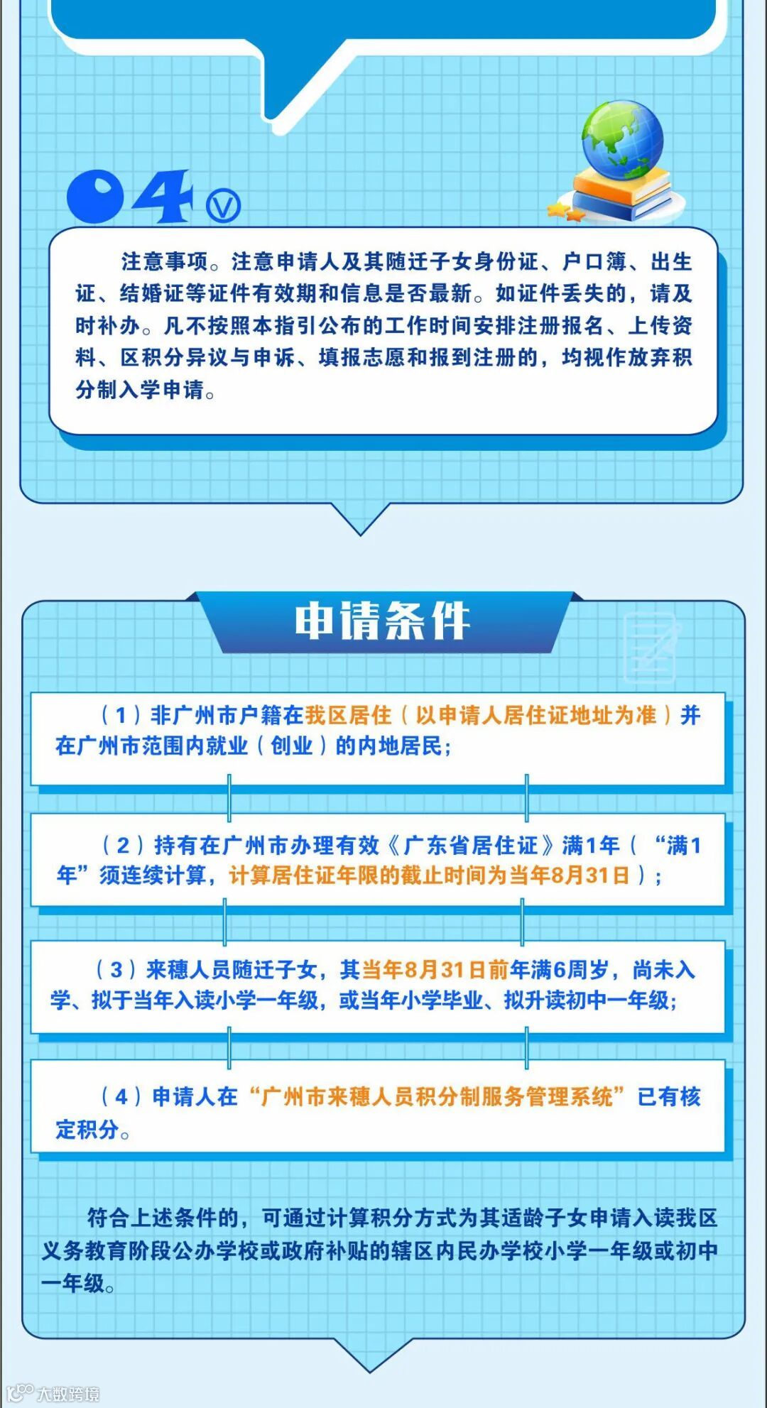 (1)在增城区连续居住满5年,以来穗人员持有的《广东省居住证》作为“在我区连续居住满5年”的证明材料,计算的截止时间为当年8月31日,以“广州市来穗人员服务管理信息系统”查询数据为准。